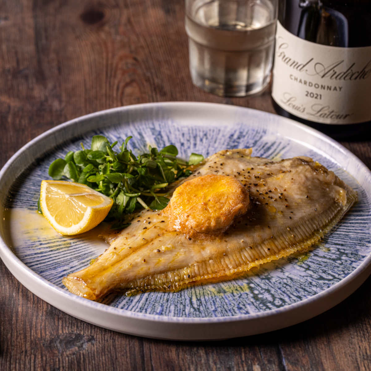 Grilled Cornish sole, Devon crab butter, crushed new potatoes | 23.5 584 kcals